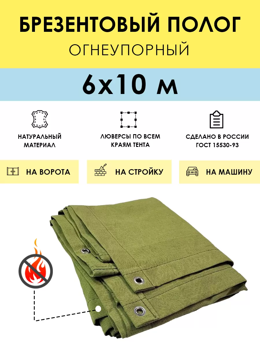 Краткое описание «Полог брезентовый огнеупорный 6x10 м, с люверсами (стандарт)»